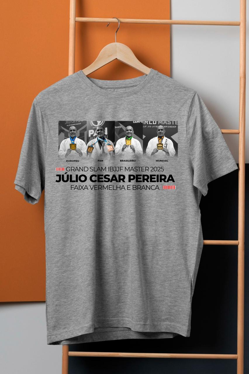 Uma homenagem ao feito histórico do Mestre Júlio César, campeão das quatro principais competições da IBJJF: Europeu, Pan, Brasileiro e Mundial — a conquista do Grand Slam completo.